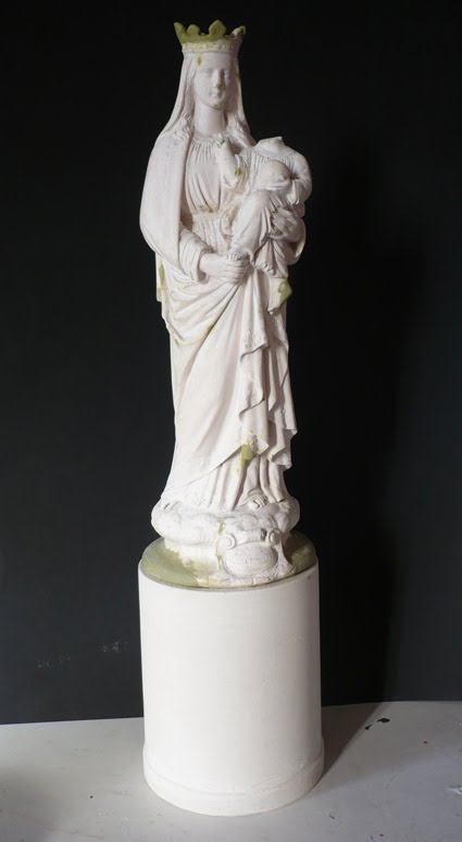 Vous aviez peut être remarqués qu'une inscription sur le socle était apparue.C'est le nettoyage qui l'a révélée. On sait donc pourquoi l'enfant pointe la sainte du doigt "Voilà votre mère" nous dit-il.
