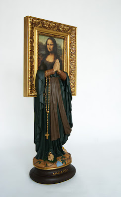 Le projet d'associer la Sainte Vierge à Monna-Lisa m'est venu il y a bien longtemps, sans doute aux alentours de 2008. Cela m'a semblé très évident d'associer ces deux figures féminines ultra connues, ultra mystique, ultra reconnaissable par tous, peu importe votre culture. Bref deux icônes en une.